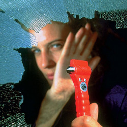 Marteau muni de deux pointes en acier trempé pour briser les vitres en quelques secondes. La lame Solingen intégré pour couper les ceintures de sécurité. Tête fluorescente pour repérage LifeHammer dans l'obscurité. Avec interrupteur pour empêcher l'abus.