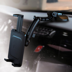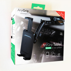 Anygrip Tablet holder, suitable for tablet from 7 till 10 inch. Sticks on any surface! Compatible with tablets like iPad and Galaxy Tab. Innovative suction solution for all surfaces: For both windshield & dashboard. It's simple and easy to use! Reusable: The sticky material on the suction cup can become contaminated with dust and it can affect the performance. Simply clean it with water and let dry to restore optimal performance. Powerful Sticky Suction: The patented sticky suction cup with soft elastomer works on rough surface such as dashboard and glass with texture. Flexibilty to various size of tablets: The adjustable arm of the holder can fit various sizes of tablet from 13 - 19,5cm. The tablet must be at least 13cm wide or tall. It doesn't matter if it's in a portrait or landscape orientation. To a max of 19,5cm.