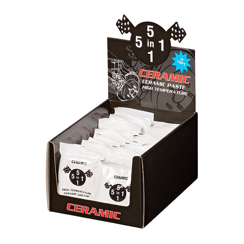 5in1 Ceramic Paste est une pâte et une graisse de montage polyvalente sans particules métalliques aux excellentes propriétés lubrifiantes. En raison de sa composition spéciale, la pâte céramique 5in1 a une plage de température très élevée. La graisse céramique réduit la friction des pièces mobiles et offre une excellente protection contre la rouille.