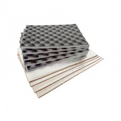 Contenu de la boîte : 4 feuilles anti-vibrations de 1,5 mm avec feuille d'aluminium (24 × 50 cm) et 5 tapis en mousse ondulée de 15 mm (25 × 35 cm). Les feuilles adhèrent fermement aux panneaux métalliques pour neutraliser les vibrations, tandis que la mousse absorbe les bruits aériens à l'intérieur de la cavité et réduit les bruits de la circulation. Ensemble, ils offrent un amortissement et une absorption acoustique efficaces dans un ensemble pratique.