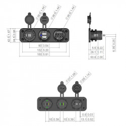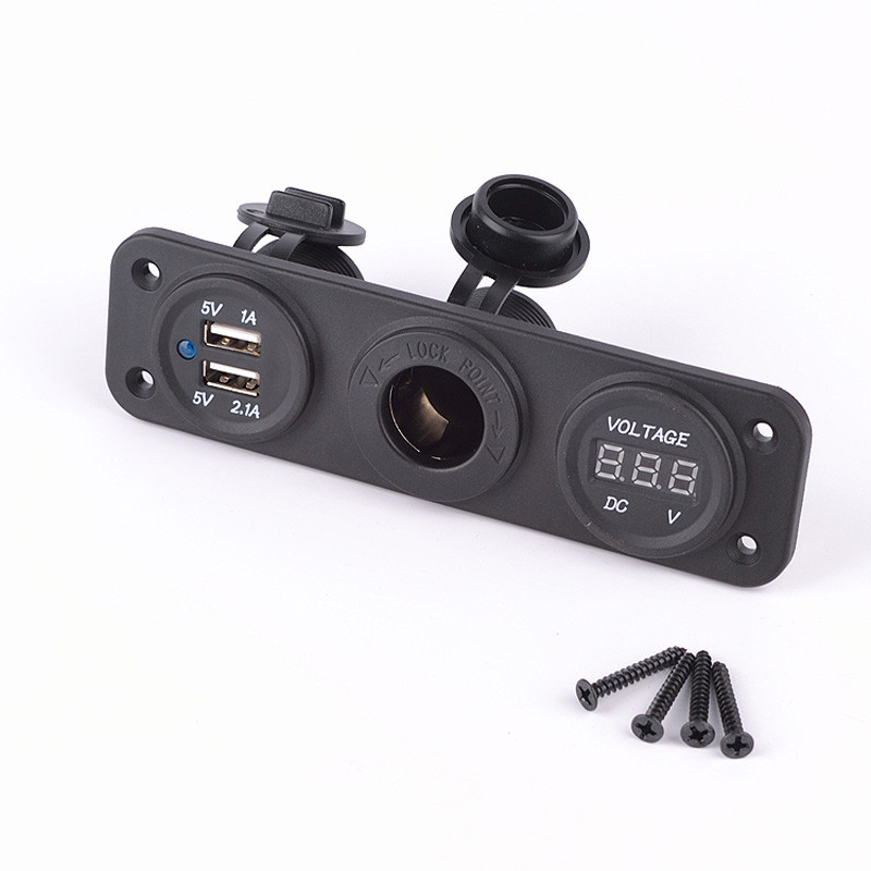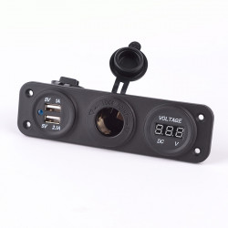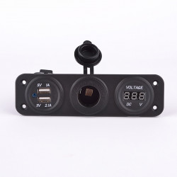 Adaptateur USB d'encastré 3-in-1 2xUSB 5V-2,1A&1A/Voltmètre/Prise/Input 12V-24V