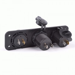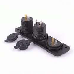 Adaptateur USB d'Encastré 3-en-1 2xUSB 5V-2,1A&1A/Ind. Volt/Prise/Input 12V-24V