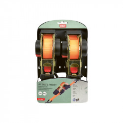 This Carpoint automatic ratchet with hooks is the ideal tool for transport or storage of goods. With this luggage belt you can securely fasten loads so that you prevent the load from sliding around. No more loose ends due to the self-rolling mechanism. The Carpoint ratchet has a length of 3 meters and a width of 25 mm. The ratchet has a maximum load capacity of 325 kilograms. The S-shaped hooks are coated to prevent damage. The automatic lashing strap is delivered per two pieces and has the TÜV/GS quality mark.