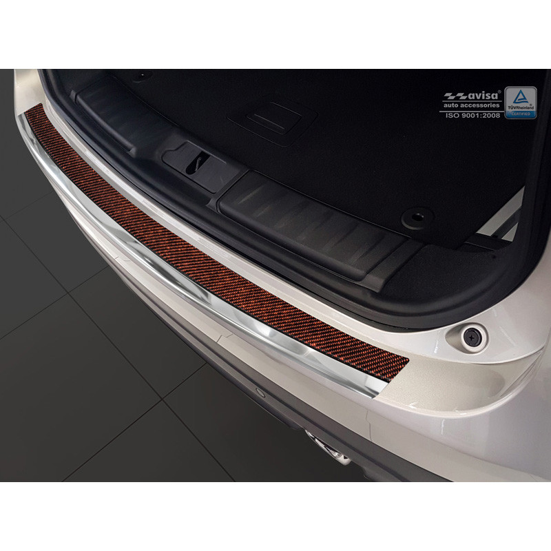 Avisa Stainless Steel / Carbon Fibre Rear Bumper Protector suitable for Jaguar F-Pace 2016-2020 & FL 2020- - High Gloss Silver / Red-Black