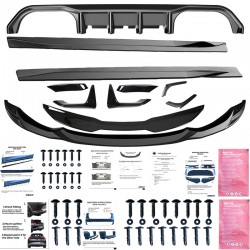 The set includes: front spoiler, front flaps, rear spoiler, side skirts, diffuser, rear side splitters