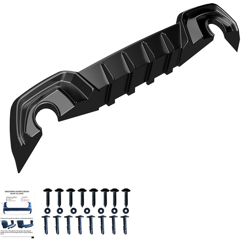 Add a touch of sophistication and style to your rear bumper with our rear diffuser. This sporty upgrade not only improves the aesthetics, but also ensures that your vehicle stands out on the road and makes a strong statement. The rear valance comes in a glossy black finish that you can easily paint if you prefer.