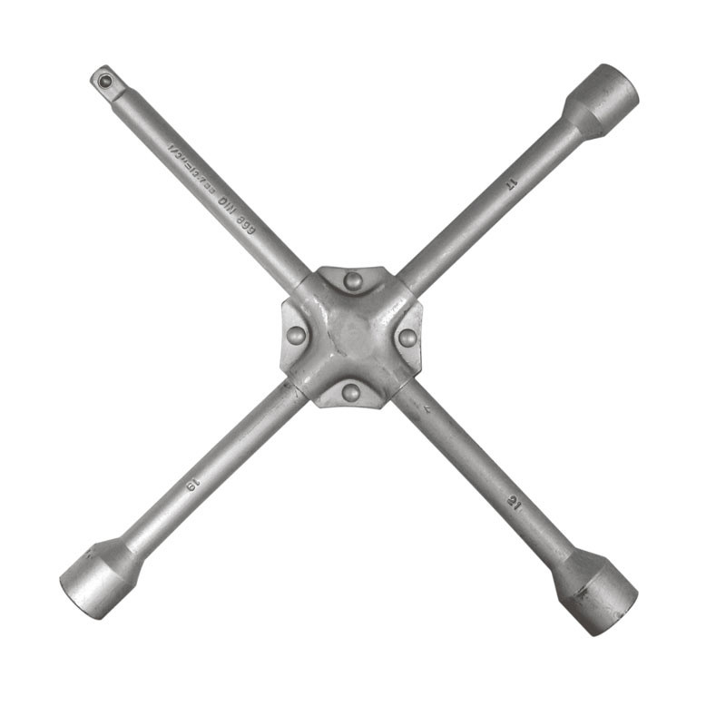 Wheel nuts can be easily tightened or unscrewed with this strong Carpoint spanner. The four-armed spanner has 3 different most common wheel nut sizes of 17, 19 and 21mm. A socket spanner can be placed on the ½-inch connection. The centre piece of the spanner is extra reinforced. Due to the leverage effect, wheel nuts can be loosened with this DIN3119 spanner without using too much force.