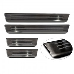 Black Inox door sill protectors suitable for Volvo S60 III & V60 II 2018- - 'Lines' - 4-pieces