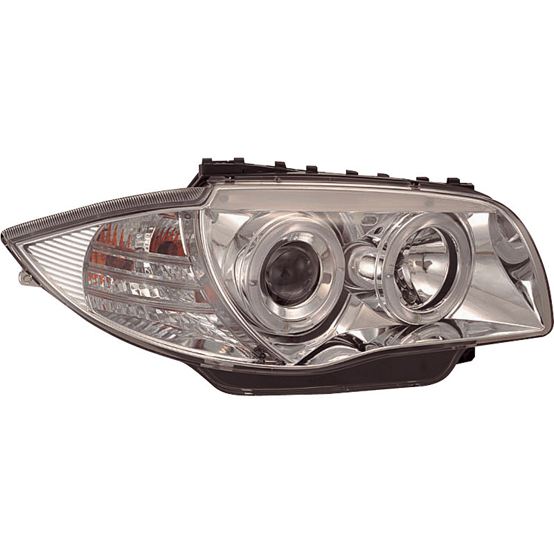 Set of replacement headlights suitable for BMW 1-Series E81/E87 2004-2011 - Chrome - incl. Halos