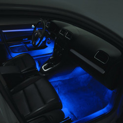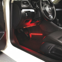 The trend everybody is searching for! Create a light show in your car interior with this Smartphone-controlled LED strips. The 4 strips are flexible and equipped with tape, which makes them easy to mount anywhere in your interior. Through a free download app serves the various colors and patterns, or send a light organ through your own music on your smartphone or car audio.