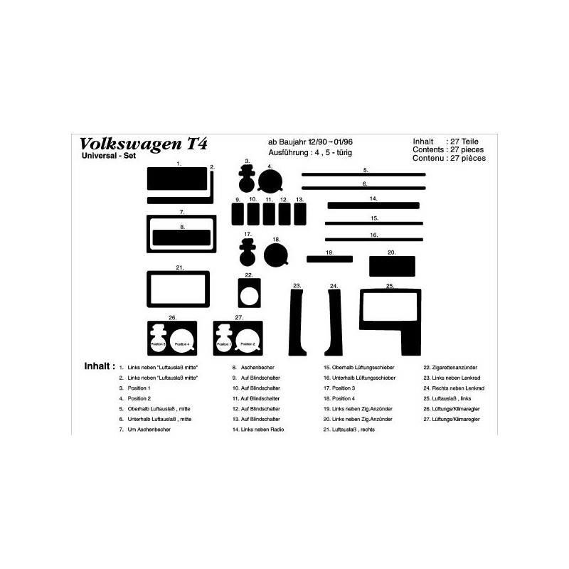 Prewoodec Interior set suitable for Volkswagen Transporter T4 9/1990-12/1995 27-pieces - Aluminum