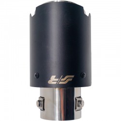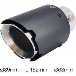Simoni Racing Exhaust Tip Round/Slanting Matt-Black+Inox - Ø89xL152mm - Installation -35-62mm