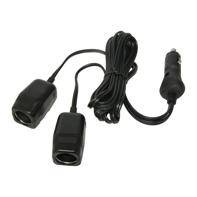 Use this Carpoint double extension cable to power two devices via the existing cigarette lighter. The extension cable is suitable for 12 volts and has a length of 2 metres per cable. With standard cigarette lighter plug. The cigarette lighter plug is suitable for the standard 21 mm cigarette lighter. The extension cable has a maximum load of 8 amps with integrated replaceable glass fuse in the plug.