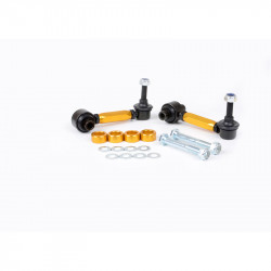 Not many enthusiasts are aware that OE and more importantly aftermarket sway bar effectiveness can be hindered by worn or inadequate mounts, drop links and lateral stoppers. Whiteline adjustable sway bar links are engineered to be up to the task with top spec, light weight componentry combined with a window of adjustability, eliminating sway bar preload on installation but most importantly ensuring the maximum output of the sway bar for improved grip and better handling.