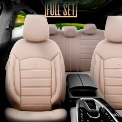 Universal Full-Leather Seat cover set 'Inspire' Crème - 11-pieces - suitable for Side-Airbags