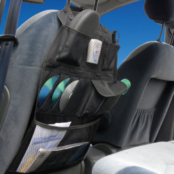 Ideal for storing all kinds of things. Large storage compartments. Fits every car seat with headrest. Easy to clean. Size 45x60 cm.