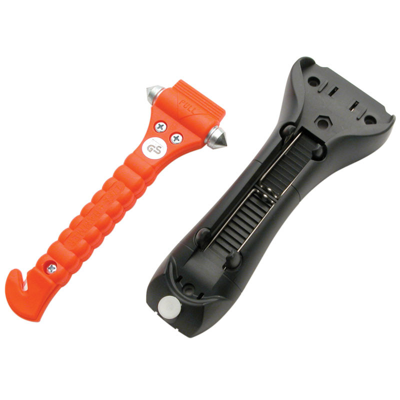 Double headed hammer with hardened points to shatter windows easily and quickly. Built-in, razor sharp Solingen blade for cutting seat belts. Fluorescent knob helps locate LifeHammer in the dark. Bulk.