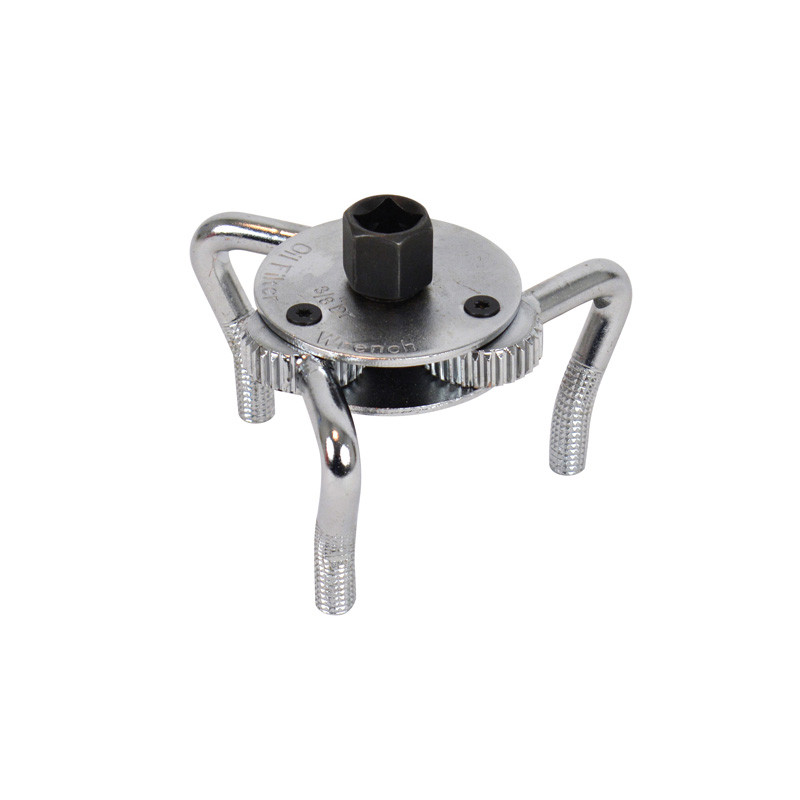 3-Leg oil filter wrench. Can be used to the left and to the right. Steel, with chrome finish. Fits oil filters between 65-110mm. 21mm - 3/8inch.