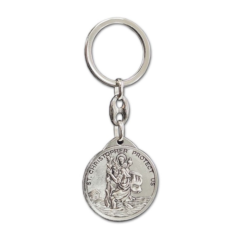 Stainless steel key chain - 'St.Christopher / St.John Paul II' (silver) - Double-sided 'V2'