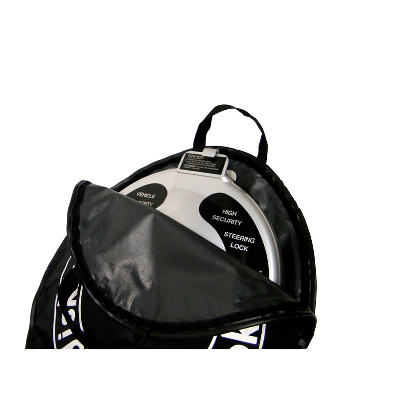 Nylon storage case for your Disklok steering wheel lock. This handy storage case will protect your Disklok and keep it safe when not in use. It has a Velcro closure for opening and closing and handy Velcro straps on the back to secure it, so it doesn't slip around in the car. The carrying handles allow quick and easy opening and are practical for transporting.