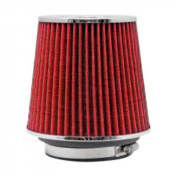 Specifications: Product Style: Round Tapered Universal Air Filter Air Filter Shape: Round Tapered Base Outside Diameter: 6 inch (152 mm) Top Outside Diameter: 4.75 inch (121 mm) Flange Inside Diameter: 4 inch (102 mm) Flange Inside Diameter 2: 3.5 inch (89 mm) Flange Inside Diameter 3: 3 inch (76 mm) Flange Length: 1.125 inch (29 mm) Flange Type: Centered Height: 5.5 inch (140 mm) Filter Material: Cotton Gauze Top Style: Metal Top Material/Finish: Chrome Color: Red