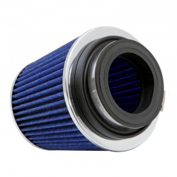 Specifications: Product Style: Round Tapered Universal Air Filter Air Filter Shape: Round Tapered Base Outside Diameter: 6 inch (152 mm) Top Outside Diameter: 4.75 inch (121 mm) Flange Inside Diameter: 4 inch (102 mm) Flange Inside Diameter 2: 3.5 inch (89 mm) Flange Inside Diameter 3: 3 inch (76 mm) Flange Length: 1.125 inch (29 mm) Flange Type: Centered Height: 5.5 inch (140 mm) Filter Material: Cotton Gauze Top Style: Metal Top Material/Finish: Chrome Color: Blue