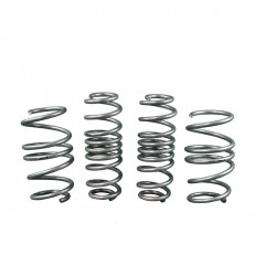 Whiteline Springs deliver improved vehicle performance whilst maintaining safety and ride quality characteristics. This kit contains 4.1kg/mm (229lb/in) front rated springs that provide a 30mm drop while the 4.3kg/mm (241lb/in) rated rears deliver a desirable 35mm to the vehicle. By lowering the vehicles centre of gravity, the unique and progressive rate coil design not only improve performance but enhance overall appearance. Developed and manufactured in Europe from the highest quality materials, coating and to the finest tolerances guaranteeing exact fitment. Whiteline Springs are engineered for optimal balance with OEM and aftermarket shocks. For total grip activation match with Whiteline Sway Bar and Essentials kit for unrivalled handling and optimal vehicle performance.