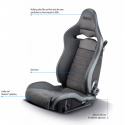 Sparco Sport Seat SPX DX - Passenger version (Right) - Black Leather/Alcantara + Carbon Backrest - Right-side Reclinable