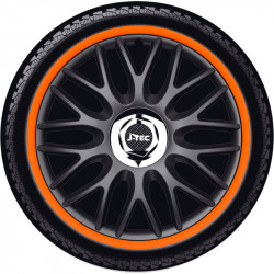 4-Delige J-Tec Wieldoppenset Orden R 15-inch zwart/oranje + chroom ring
