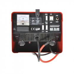 Absaar professionele 12V/24V acculader AB-SL40 met handvat en wielen. Voor het laden en starten van auto's, motorfietsen en boten. Accucapaciteit 100-600 Ah en laadvermogen 40 Amp. Met jumpstarterfunctie van 250 Amp. Bescherming tegen overbelasting, kortsluiting en omgekeerde polariteit. Schakelaar voor snel of standaard laden. Laadkabel met geïsoleerde klemmen & handgrepen en opbergvak voor kabels en klemmen.