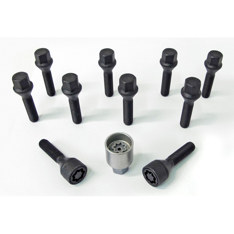 H&R Wielboutenset konisch M12x1.50 - Lengte 38mm - Zwart - 10 stuks - incl. wielsloten