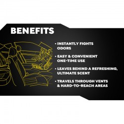 Het product is eenvoudig te gebruiken en werkt tot meerdere weken. De nevel circuleert door het ventilatiesysteem van uw voertuig en verwijdert geuren – ideaal voor auto’s, bestelwagens, SUV’s, campers of boten.