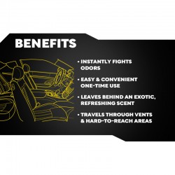 Het product is eenvoudig te gebruiken en werkt tot meerdere weken. De nevel circuleert door het ventilatiesysteem van uw voertuig en verwijdert geuren - ideaal voor auto’s, bestelwagens, SUV’s, campers of boten.
