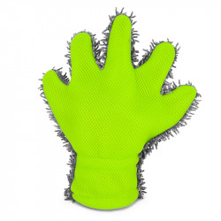 Robuuste washandschoen met dubbelzijdige werking. Ideaal voor het wassen van uw auto, velgen en voor het verwijderen van insecten op uw lak. Door de 5 vingers voorziet deze handschoen in een optimale grip en kunt u ook onbereikbare hoekjes bereiken, zoals tussen de spaken van uw velgen. De grijze zijde is geschikt voor het wassen van uw auto, de groene zijde is voor het verwijderen van aanslag en insecten. Geschikt voor alle oppervlakten en lakken..