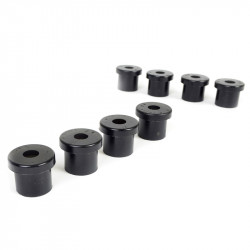 Een kritisch onderhoudsitem voor elk voertuig met bladvering. Veel kilometers en zware belasting veroorzaken overmatige slijtage van rubbervoeringen. Whiteline's kenmerkende zwarte voeringen zijn gemaakt van zeer sterk materiaal en bieden uitstekende slijtvastheid, hoge belastbaarheid (4WD's, terreinwagens en afsleepwagens), flexibiliteit, verhoogde treksterkte en chemische weerstand tegen olie, vet, ozon en verwering.