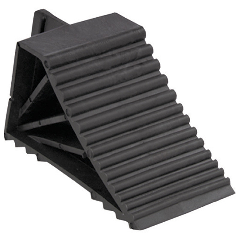 Het geribbelde oppervlak zorgt ervoor dat de band stevig op zijn plaats blijft, waardoor het risico op wegglijden of verschuiven wordt verminderd. Dankzij het compacte, lichtgewicht ontwerp en de handgreep is het wielblok gemakkelijk mee te nemen, op te bergen en te gebruiken.