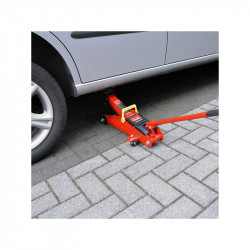 De Carpoint hydraulische garagekrik van aluminium en staal om snel en makkelijk een auto op te krikken. De hefhoogte van de werkplaatskrik is van 130-380mm. De krik is maximaal belastbaar tot 2000 kilogram. Eenvoudig met de pompstang onder iedere auto te rijden door de twee wielen aan de voorkant en de twee 360° draaibare zwenkwielen aan de achterkant van de krik. Voorzien van nokken op de steunplaat voor optimale ondersteuning van de carrosserie en ontluchtingsventiel om de krik te laten zakken. Automatische veiligheidsklep in geval van overbelasting. Daarnaast is de autokrik gemakkelijk te tillen door het handige handvat. Gebruik de krik altijd in combinatie met assteunen. De verrijdbare krik heeft een CE-markering.