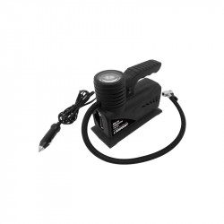 Deze compacte luchtcompressor is te gebruiken voor auto-, motor-, en fietsbanden, rubber boten, luchtbedden en ballen. Analoge manometer. Met 2 adapters, luchtslang (47cm) en voedingskabel (2m).