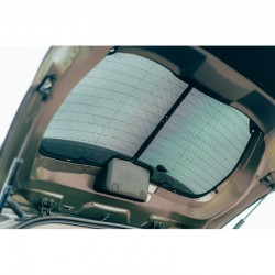 • Het zonnescherm voor de achterruit bestaat uit 2 delen