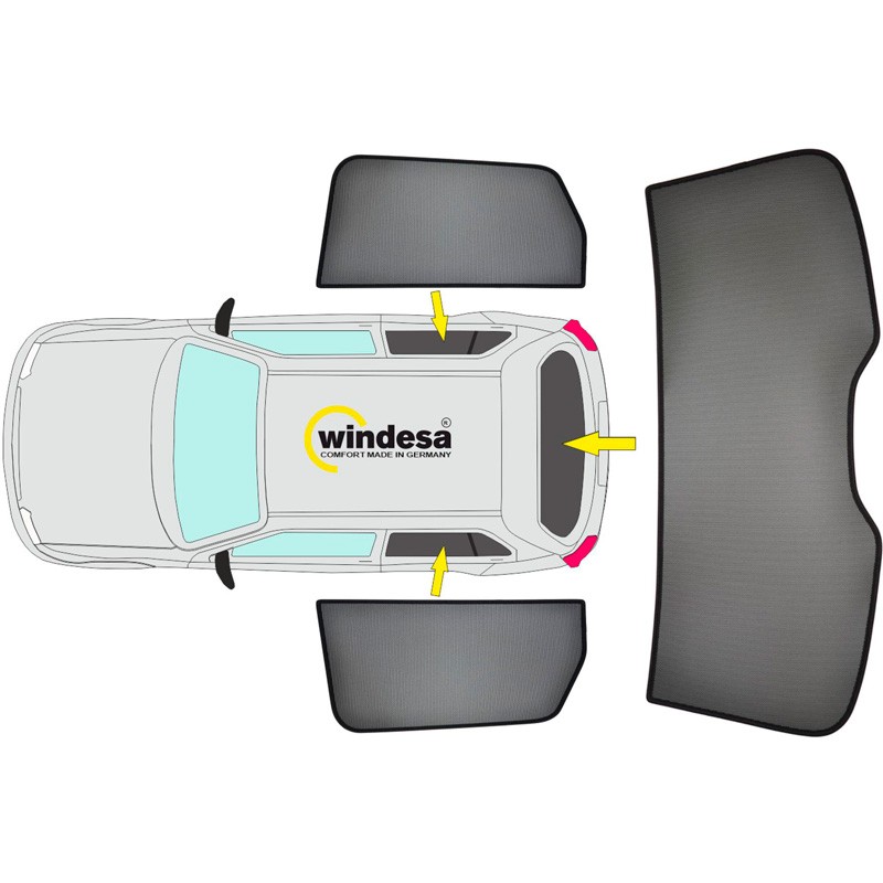 - Premium zonneschermen voor alle ruiten vanaf de B-stijl, achterruitdeel vervaardigt uit één stuk!