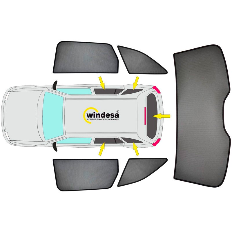 - Premium zonneschermen voor alle ruiten vanaf de B-stijl, achterruitdeel vervaardigt uit één stuk!