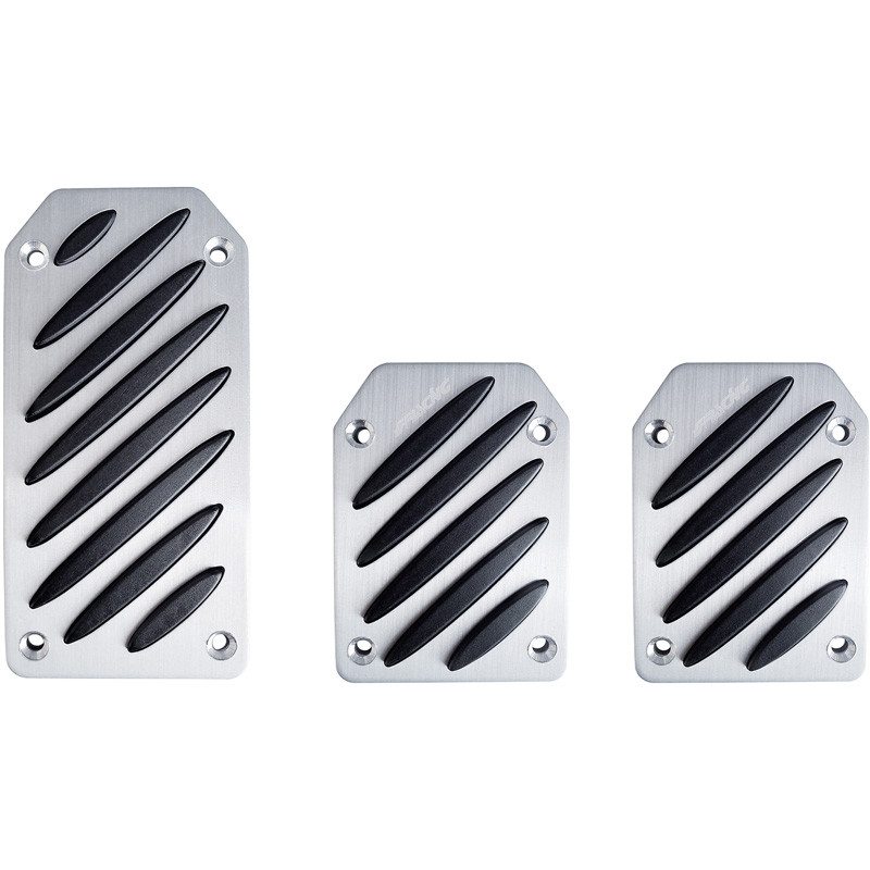 Simoni Racing Set Pedalen Black Stripe - Aluminium + Anti-Slip - Handgeschakeld Vernieuw het interieur van je auto en installeer een set sportpedalen. Deze Simoni Racing 3-delige pedaalset is gemaakt van geborsteld aluminium en heeft zwarte rubberen inzetstukken voor een perfecte grip op je pedalen. Afstand tussen de schroeven: Gaspedaal - hoogte 100mm, breedte 48mm. Rem/koppeling - hoogte 56mm, breedte 46mm.