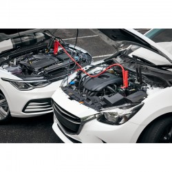 Met het OSRAM startkabelassortiment hebben bestuurders van motorfietsen, auto's, bedrijfsvoertuigen en vrachtwagens nu een snelle en gemakkelijke manier om accu-energie over te dragen tussen een donorvoertuig en een ontvangend voertuig, zodat ze weer klaar zijn voor de weg. De BATTERYstart STARTKABEL 1200A van OSRAM is een hoogwaardige startkabel voor professioneel en particulier gebruik. De kabels zijn gemaakt van met koper bekleed aluminium, wat de weerstand van de kabel vermindert en een constante en effectieve overdracht van de stroom mogelijk maakt. De startkabel is 5 meter lang en heeft een doorsnede van 50mm². Dankzij de lengte en de dwarsdoorsnede kunnen voertuigen met benzine- en dieselmotoren tot 9,5 liter worden gestart, aangezien een piekstroom tot 1200 A en een gelijkstroom van 600 A kan worden bereikt. Het is geschikt voor 12V en 24V. Om zware slijtage te voorkomen is de OSRAM BATTERYstart STARTKABEL 1200A ommanteld met flexibel maar duurzaam PVC en de geïsoleerde klemmen bieden extra veiligheid en duurzaamheid. De verschillende kleuren van de kabels en de handgrepen op de klemmen verminderen het risico dat de positieve en negatieve klemmen worden verward en dus het risico van een verkeerde aansluiting op de accu. Met de meegeleverde opbergtas kunnen de kabels netjes en ruimtebesparend worden opgeborgen. De gebruiksaanwijzing is ook aan de achterkant van de opbergtas bevestigd en is dus snel toegankelijk.