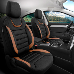 otoM Universele Suede/Leder/Stoffen Stoelhoezenset 'Iconic' Zwart/Terracotta - 11-delig - geschikt voor Side-Airbags