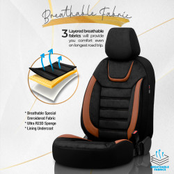 Universele Suede/Leder/Stoffen Stoelhoezenset 'Iconic' Zwart/Terracotta- 11-delig - geschikt voor Side-Airbags