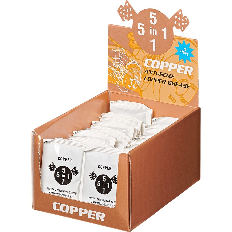 5in1 koperpasta is een speciale universele antivreet- en montagepasta met uitmuntende smerende eigenschappen. 5in1 koperpasta bevat waterverdringende- en corrosiewerende eigenschappen, heeft een uitstekende hechting, en smeert uitermate goed en langdurig. Doordat de kopervet van 5in1 uitstekend bestand is tegen hoge temperaturen, kunnen metaalverbindingen veel langer meegaan.