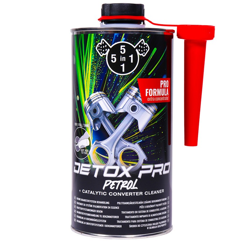 De 5in1 Petrol Detox Pro is een alles-in-één, uiterst geconcentreerde en effectieve probleemoplosser voor alle aanslag gerelateerde problemen in benzinemotoren. Reinigt injectoren, kleppen, verbrandingskamer, katalysator en het gehele brandstoftoevoersysteem en optimaliseert de verbranding door de toegevoegde octaanbooster. Verwijdert effectief afzettingen in het hele brandstofsysteem, waardoor storingen worden opgelost. Ervaar een merkbare toename in motorvermogen en responsiviteit wanneer de 5in1 Petrol Detox Pro de optimale verbrandingsomstandigheden van je motor herstelt. Voel de sensatie van een soepelere en dynamische rit.